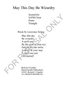 Written for SATB choir, piano, and triangle, the lyrics are about choosing to create magic for ourselves, first and foremost. And in so doing, our lives and the lives of those we touch get better!