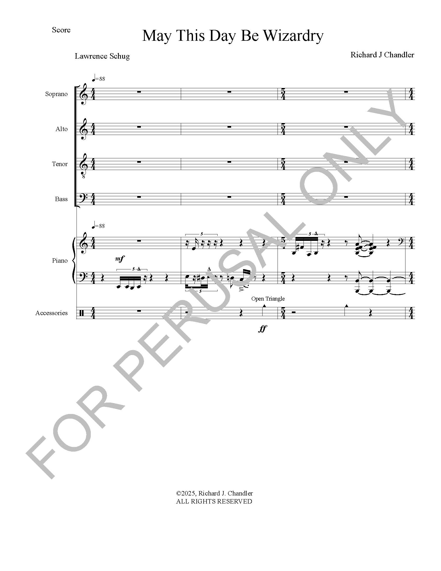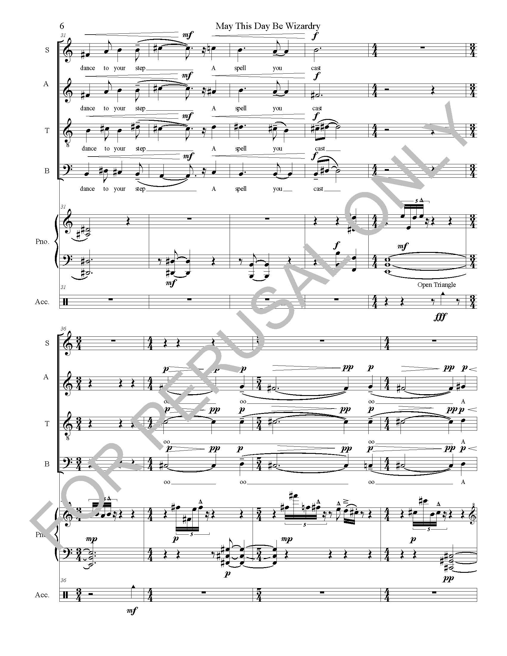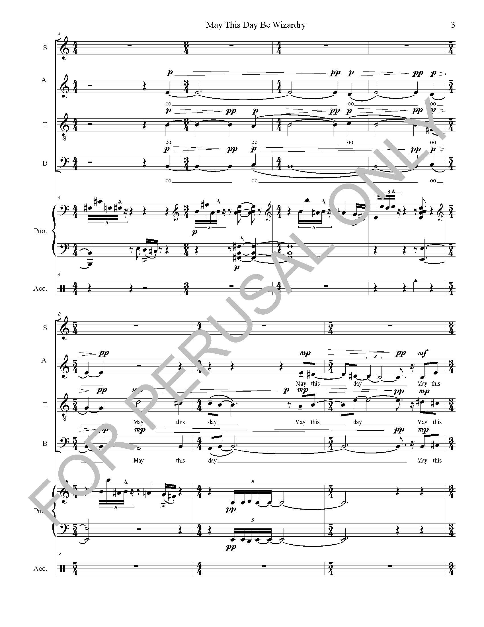 I make use of shifting meter and a good deal of up and down movement to give the piece the variety and surprise that one might find in watching a magician's magic act.